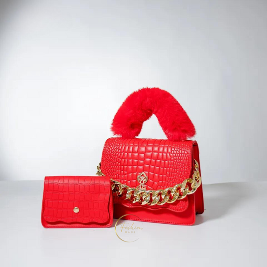 Lea Furr Pu Leather Elegant Bag (Set of 2 with Chain Accessories)